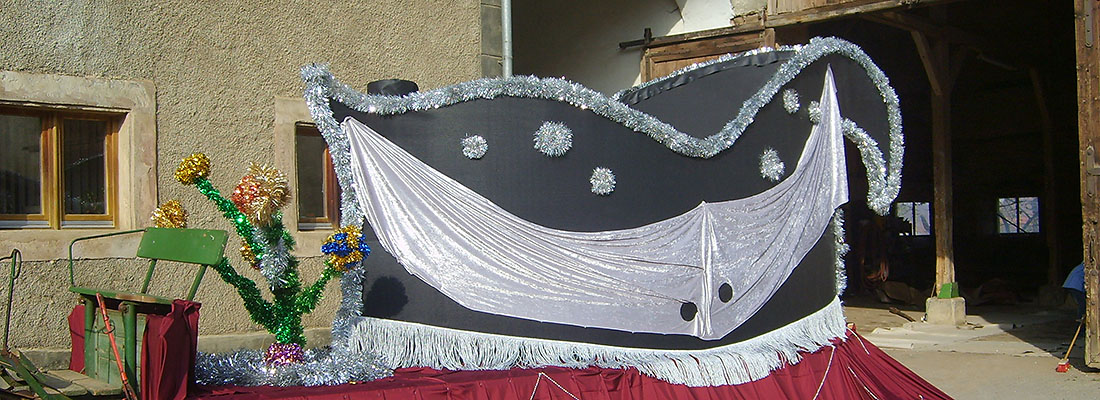 Seit 2006 bauen wir ehrenamtlich den Prinzenwagen für die örtliche Faschingsgesellschaft, die KaGe Ellingen. Dazu kommt die regelmäßige Unterstützung beim Bühnenbau für die Theateraufführungen der „Bleinfelder Sandhosn“ und der „Kolpingsfamilie Ellingen“.
